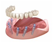 Протезирование зубов при дефиците костной ткани и адентии (отсутствии зубов) с помощью 4-х (технология All-on-4) или 6-ти (технология All-on-6) имплантов.